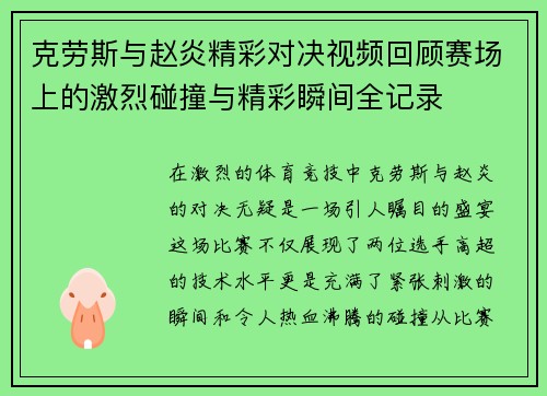 本文将围绕“凯尔特人队与雄鹿的激烈对决揭示季后赛争夺战的关键时刻”这一主题进行深入探讨。首先,文章将介绍两支球队在季后赛中的历史渊源及其竞争背景,分析双方在比赛中的战术布置和核心球员表现。其次,将重点关注比赛中出现的关键时刻,包括决定胜负的转折点,以及这些时刻如何影响了球队士气和接下来的比赛走向。随后,文章还将讨论这场对决对整个季后赛格局的影响,尤其是对其他球队的启示和警示。最后,将总结凯尔特人队...